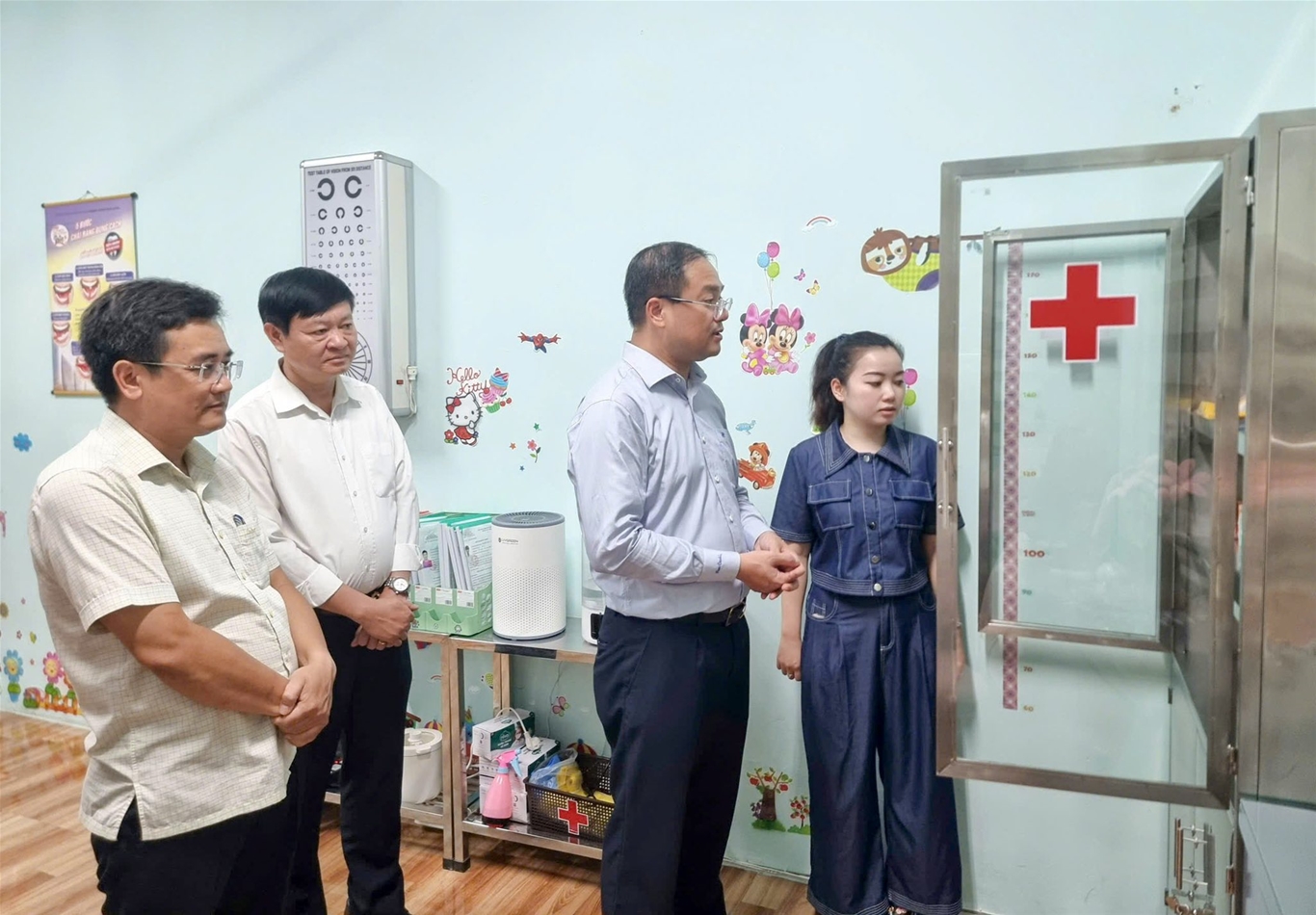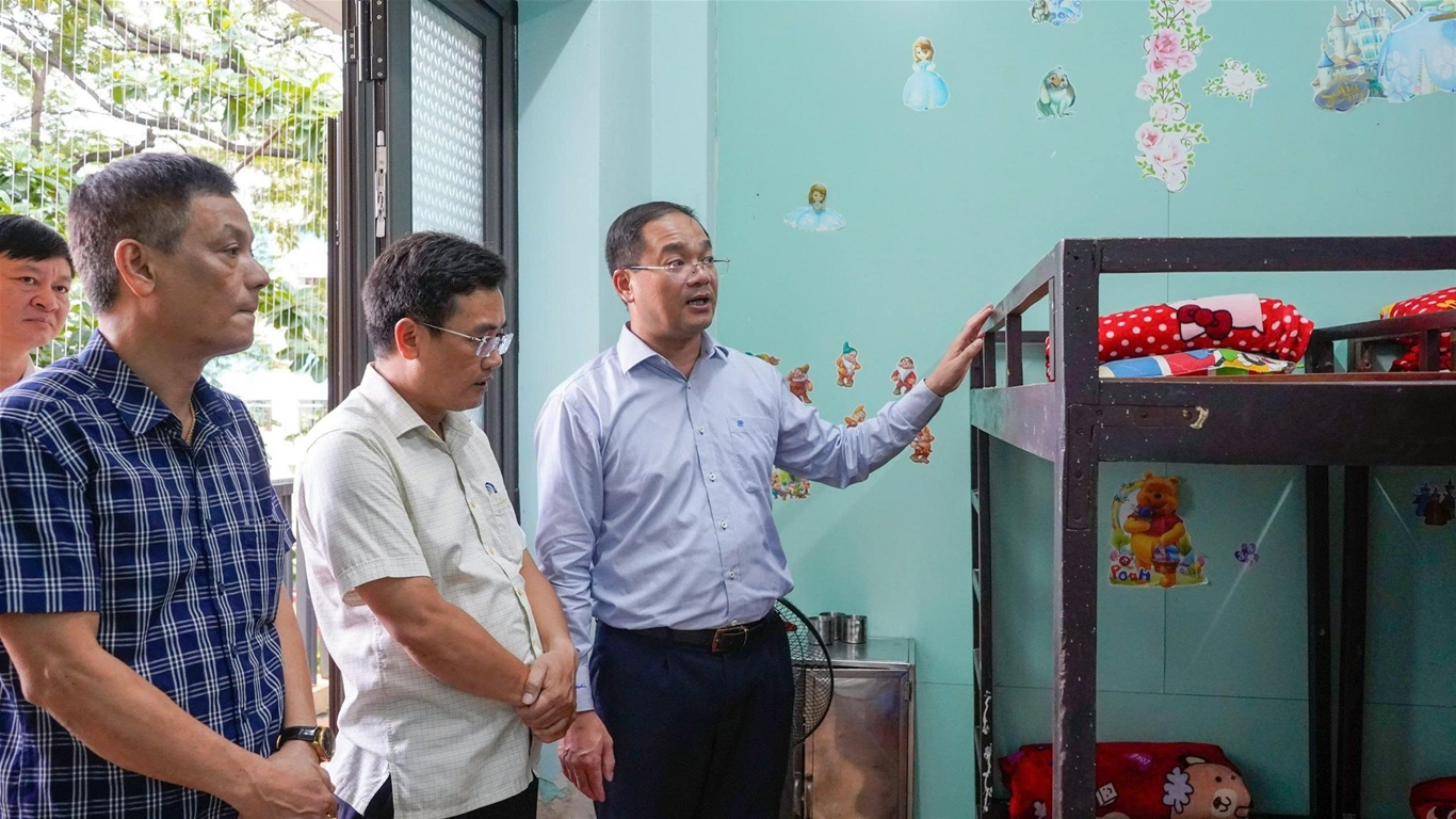 Đồng chí Nguyễn Ngọc Việt, Thành ủy viên, Bí thư Đảng ủy – Chủ tịch HĐND phường Đống Đa giao nhiệm vụ cho cán bộ, nhân viên và thăm, động viên trẻ em.