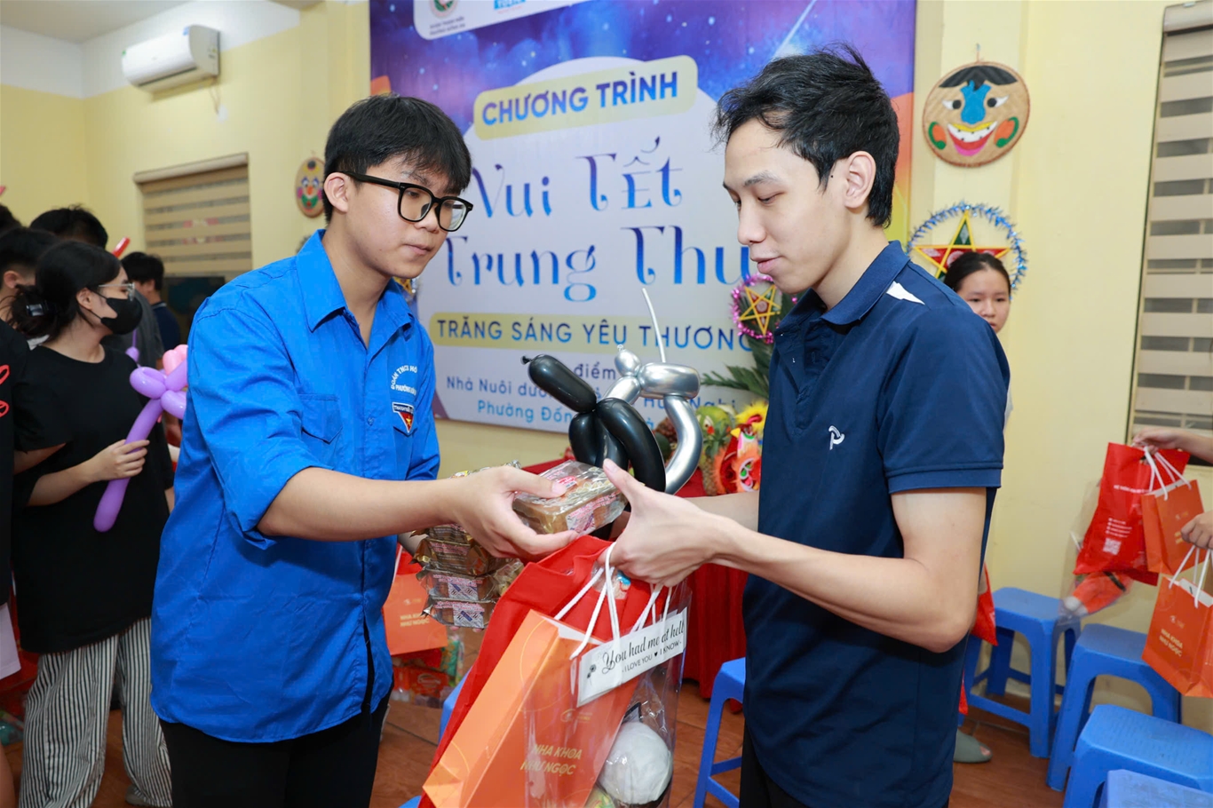 Sinh viên các trường Đại học Mỏ - Địa chất, Đại học Mở và Học viện Ngân hàng cùng trẻ em Nhà nuôi Hữu Nghị vui chơi, phá cỗ.